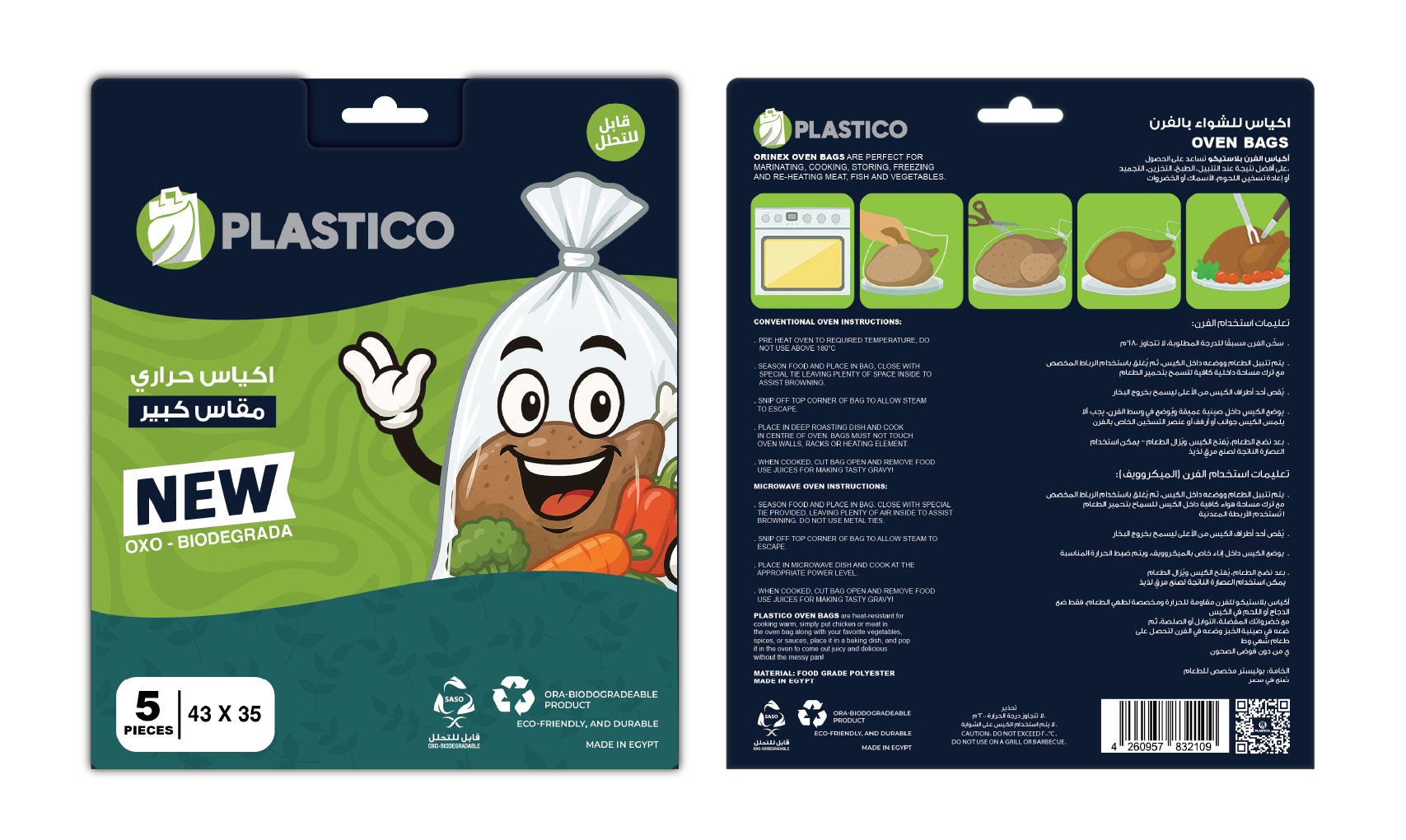 أكياس بلاستيكو الحرارية للفرن مصممة خصيصًا للطهي والتحمير الآمن والسهل داخل الفرن. تساعد على الاحتفاظ بالنكهة والعصارة داخل الطعام مع تقليل الفوضى والانسكابات داخل الفرن. مقاومة لدرجات الحرارة العالية ومناسبة لطهي اللحوم والدواجن والخضروات.